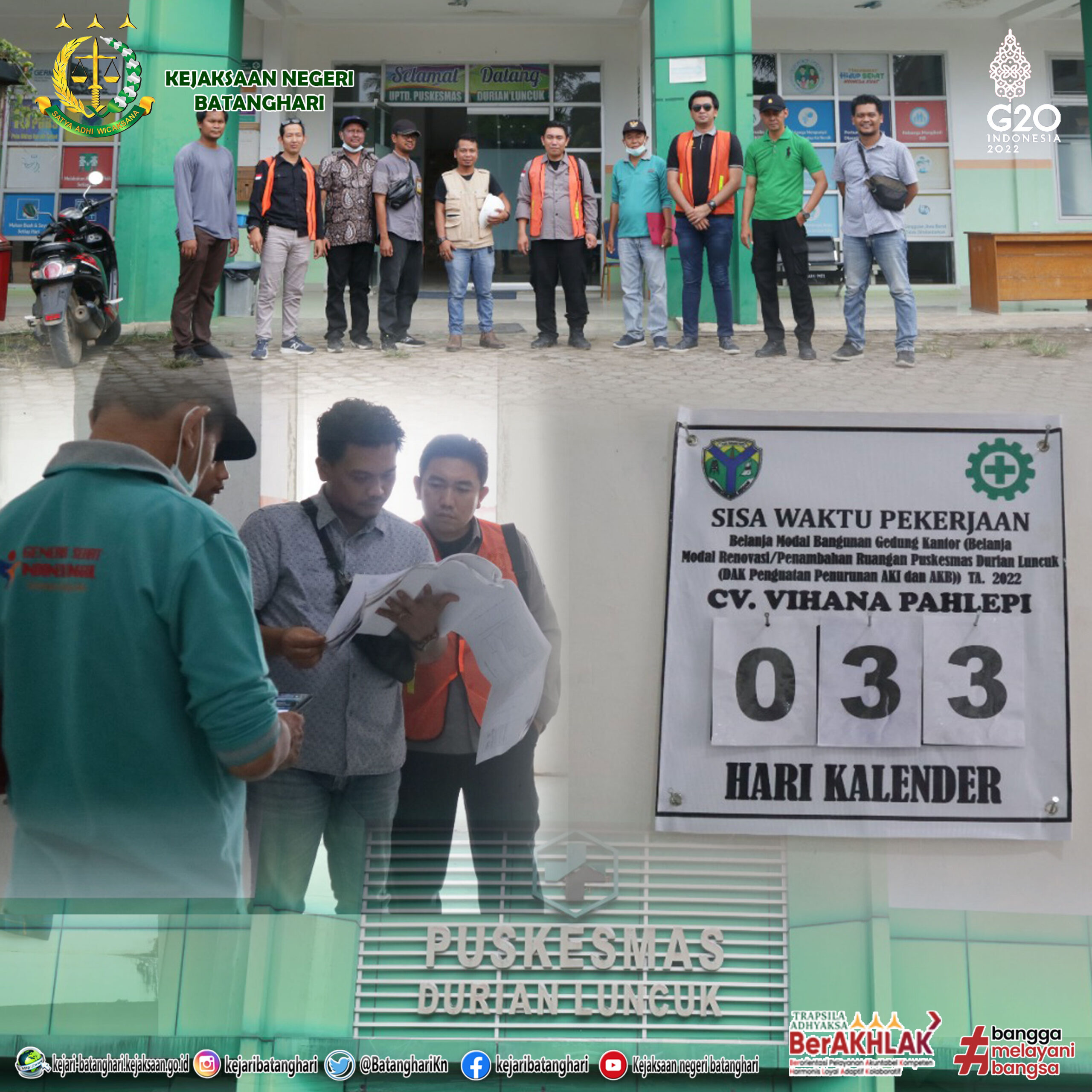 Pada Jum’at, 07 Oktober 2022, telah dilaksanakan Site Visit Proyek Kejaksaan Negeri Batanghari terhadap 3 Kegiatan Dinas Kesehatan Kabupaten Batanghari.